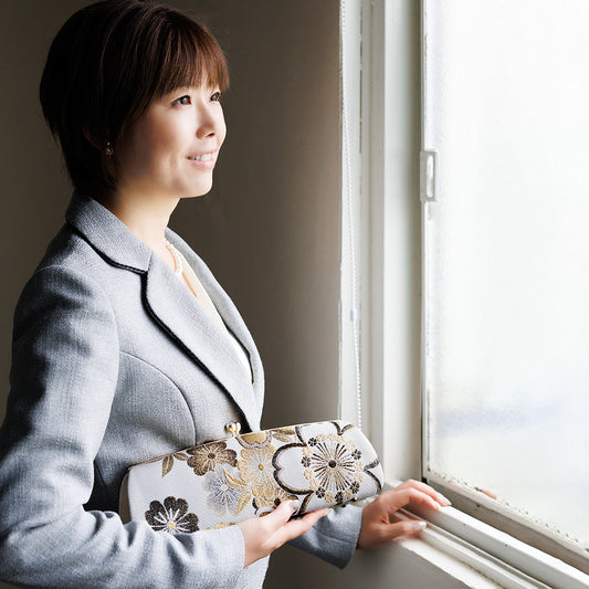 Omi | Pochette faite à la main avec motif Hanatoki flambant neuf Nishijin-ori