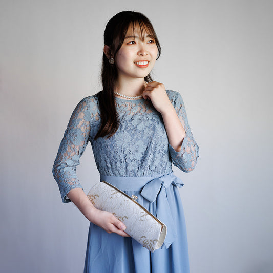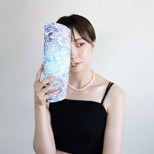 Omi | Pochette faite main avec Nishijin-ori en dentelle bleu clair (sur commande)