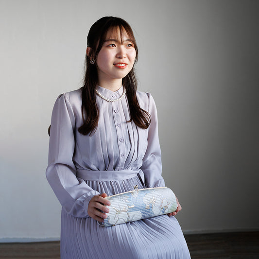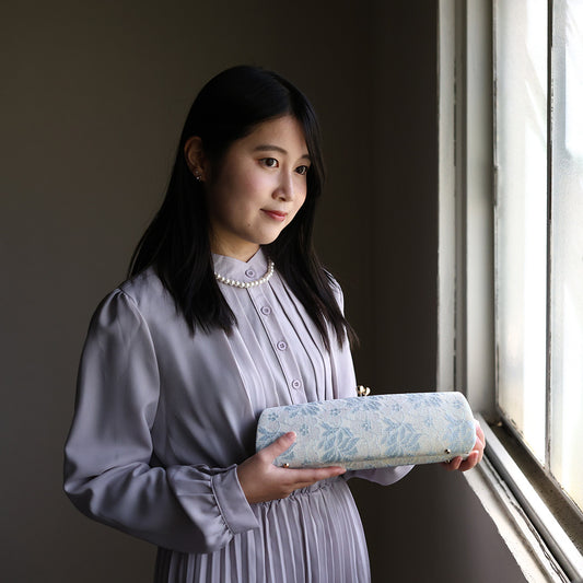 Izumo | Sac à main fait main avec Nishijin-ori en dentelle bleu clair (sur commande)