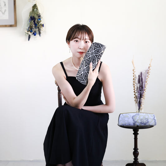 Omi | Pochette faite main avec Nishijin-ori en dentelle noire et or (sur commande)