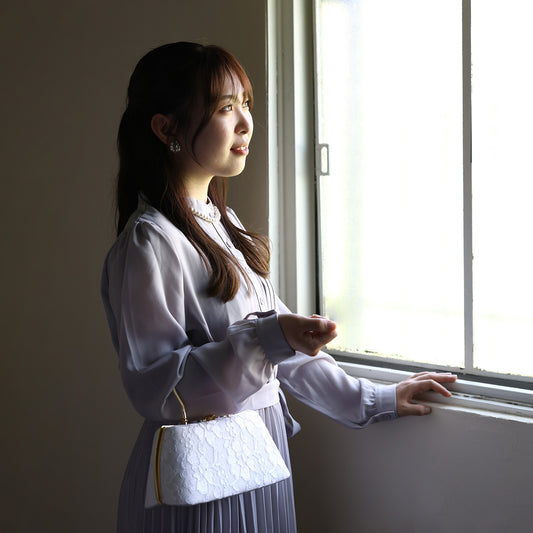 Izumo | Sac à main fait main avec Nishijin-ori en dentelle blanche (sur commande)